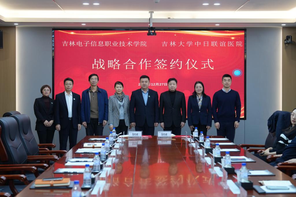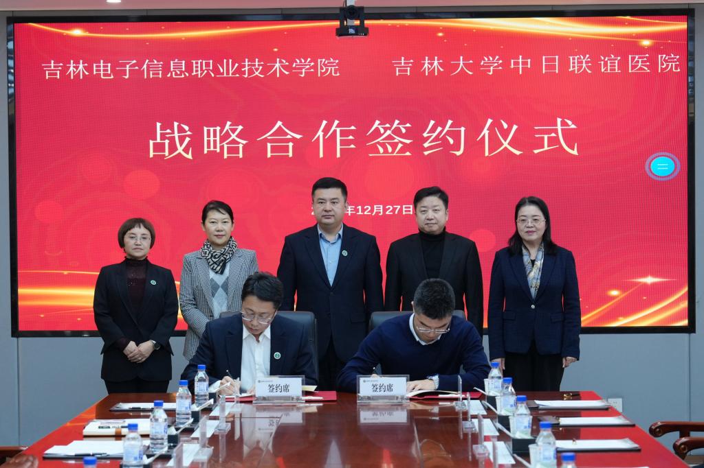 12月27日,我校与吉林大学中日联谊医院举行医疗卫生服务保障合作协议签约仪式。吉林大学中日联谊医院党委书记杜建时,党委副书记、纪委书记张朝晖,党委副书记兼副院长李旭东,党政综合办公室主任王宗强;学校党委副书记、校长曾繁明,纪委书记、监察专员高楠,副校长于钧、刘占文、张晓娟出席仪式。签约仪式由于钧主持。